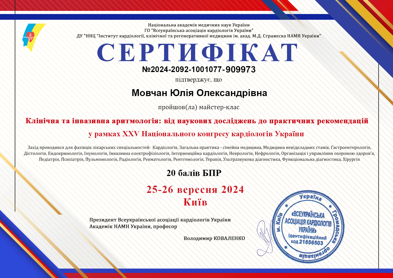 - XXV Національний конгрес кардіологів України;